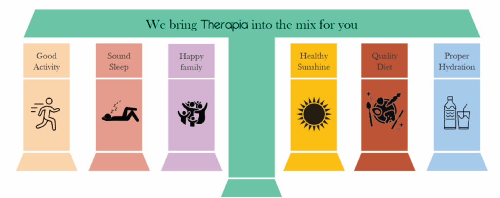 Good Activity, Sound Sleep, Happy Family, Healthy Sunshine, Quality Diet, and Proper Hydration. These foundational elements are vital for maintaining a healthy and balanced life. However, we understand that modern lifestyles can sometimes make it challenging to meet all these needs.